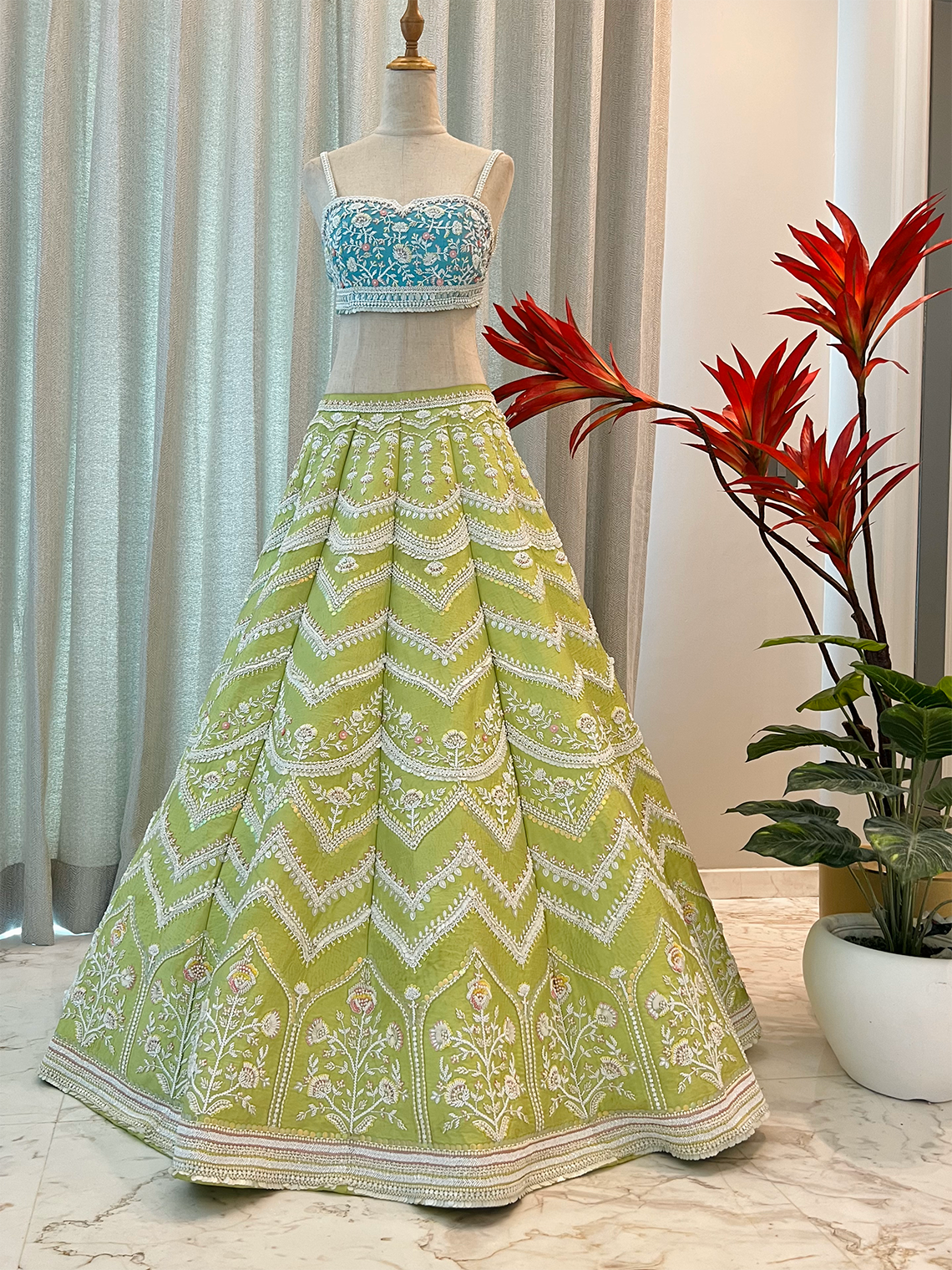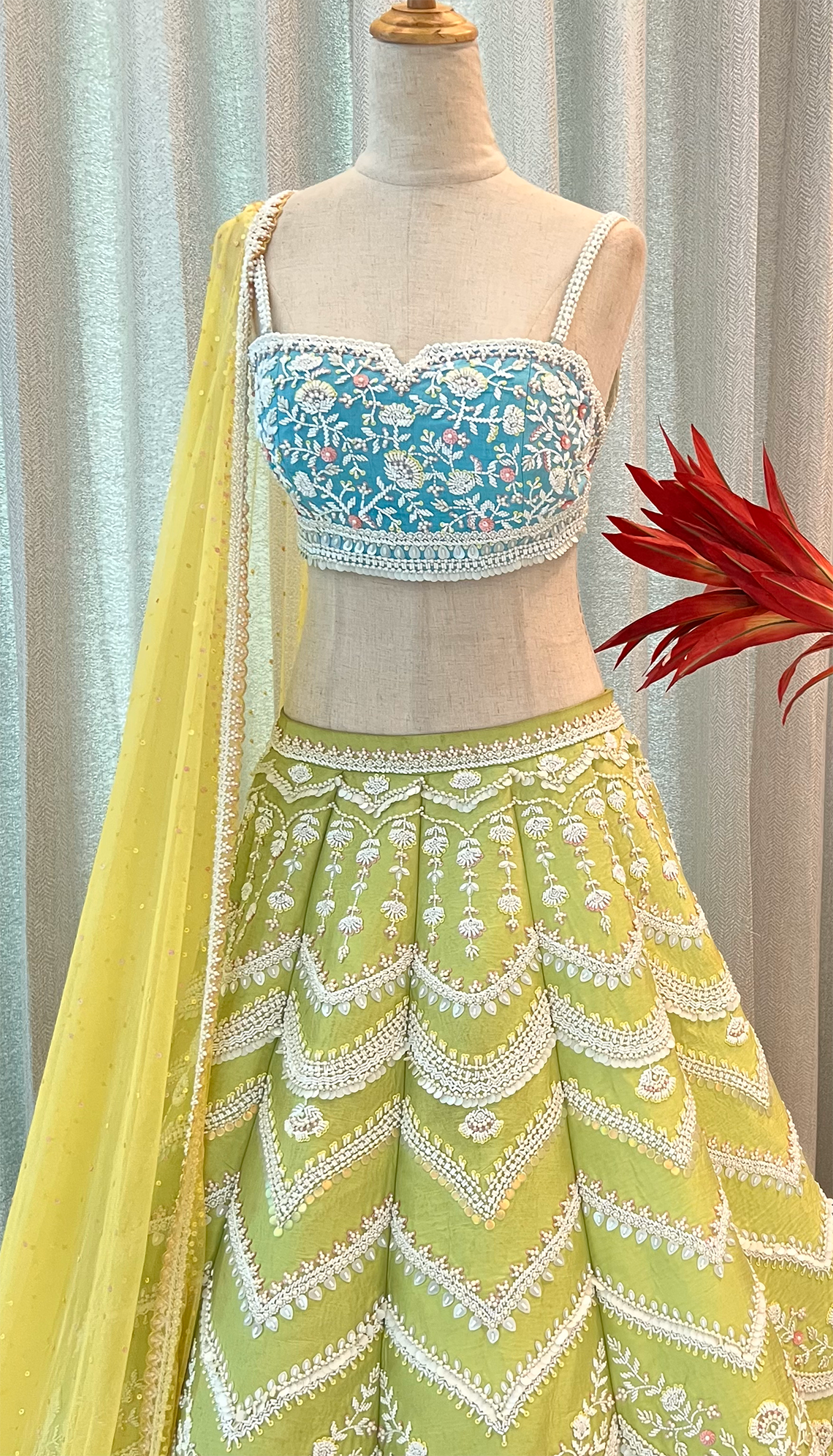 Fabric- Silk Taffeta lehenga, Raw Silk blouse and soft net dupatta