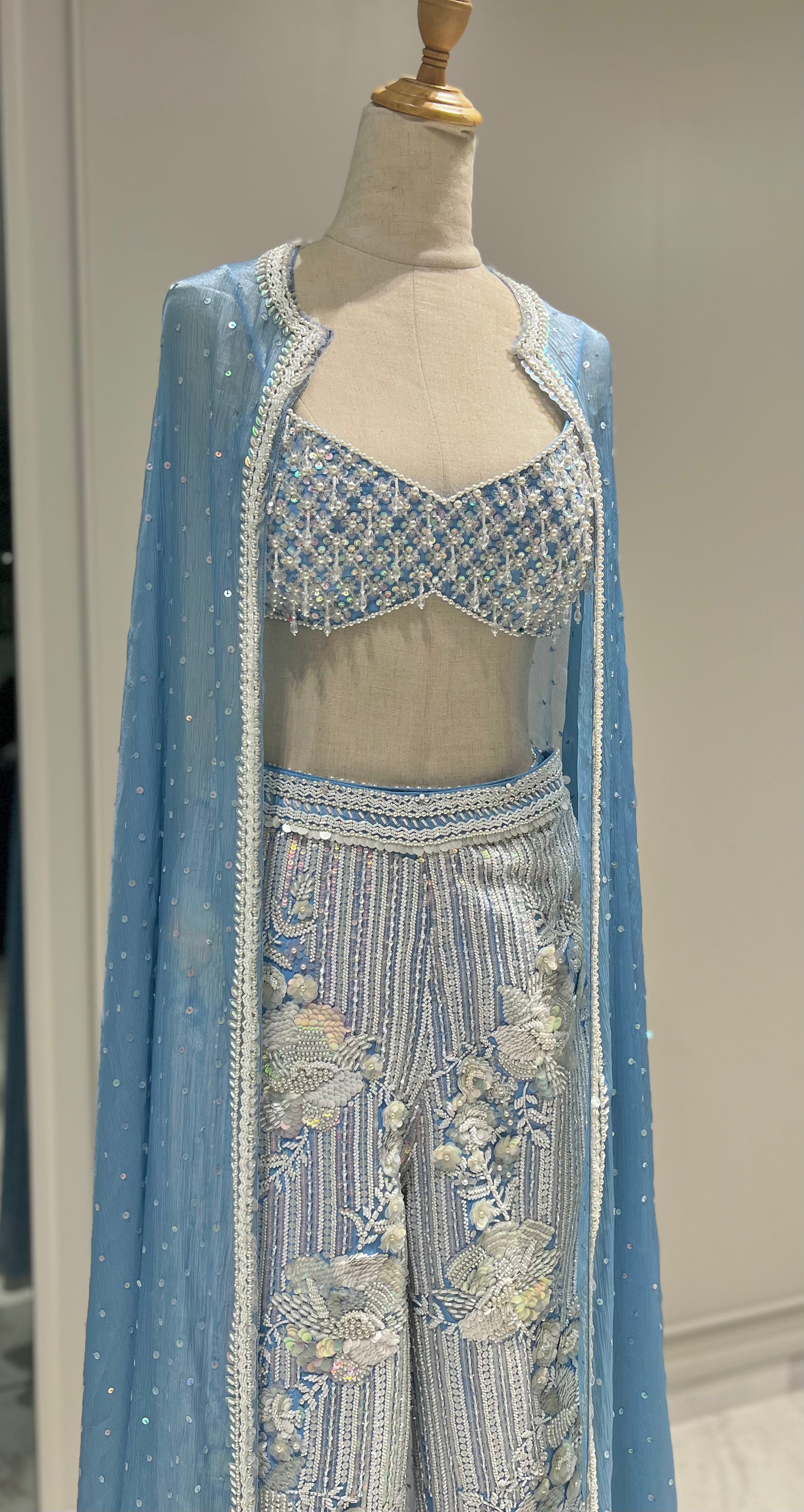 Fabric- Silk Taffeta pants and blouse, Silk organza cape
