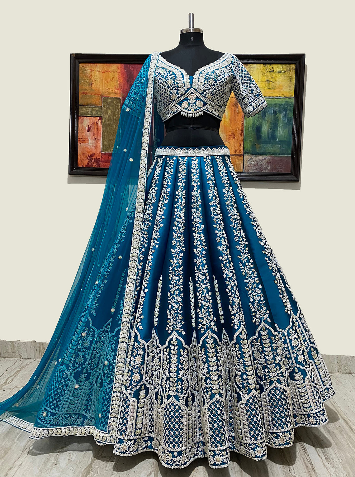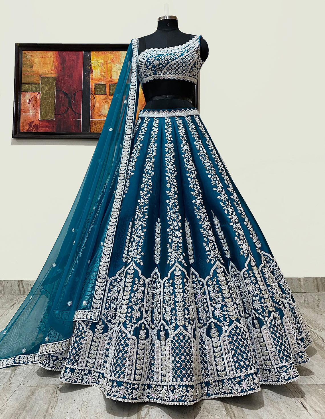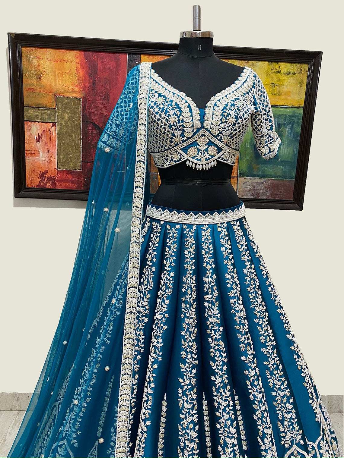 Fabric- Silk taffeta lehenga and blouse, Soft Net dupatta