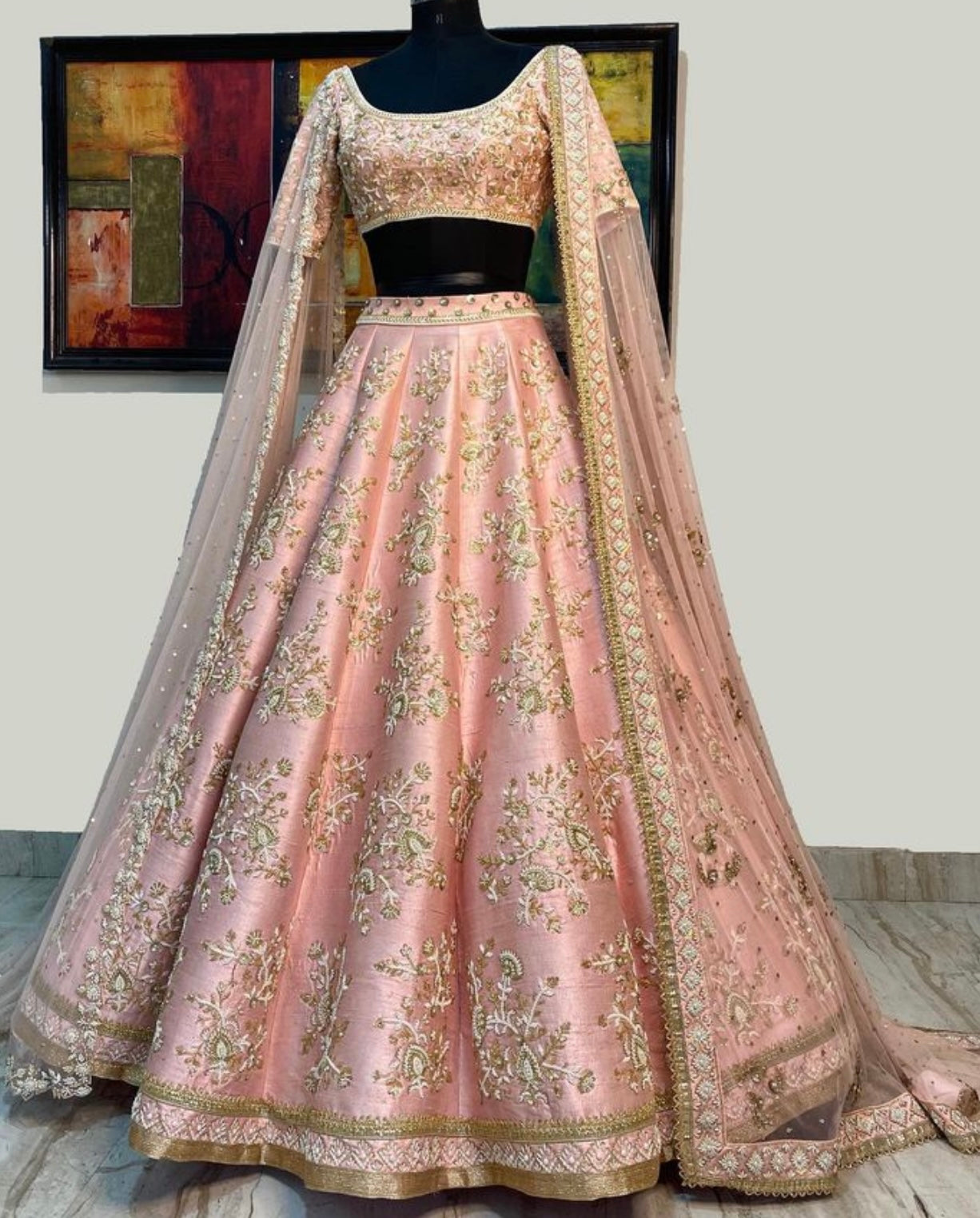 Fabric- Raw Silk lehenga and blouse, Soft Net dupatta