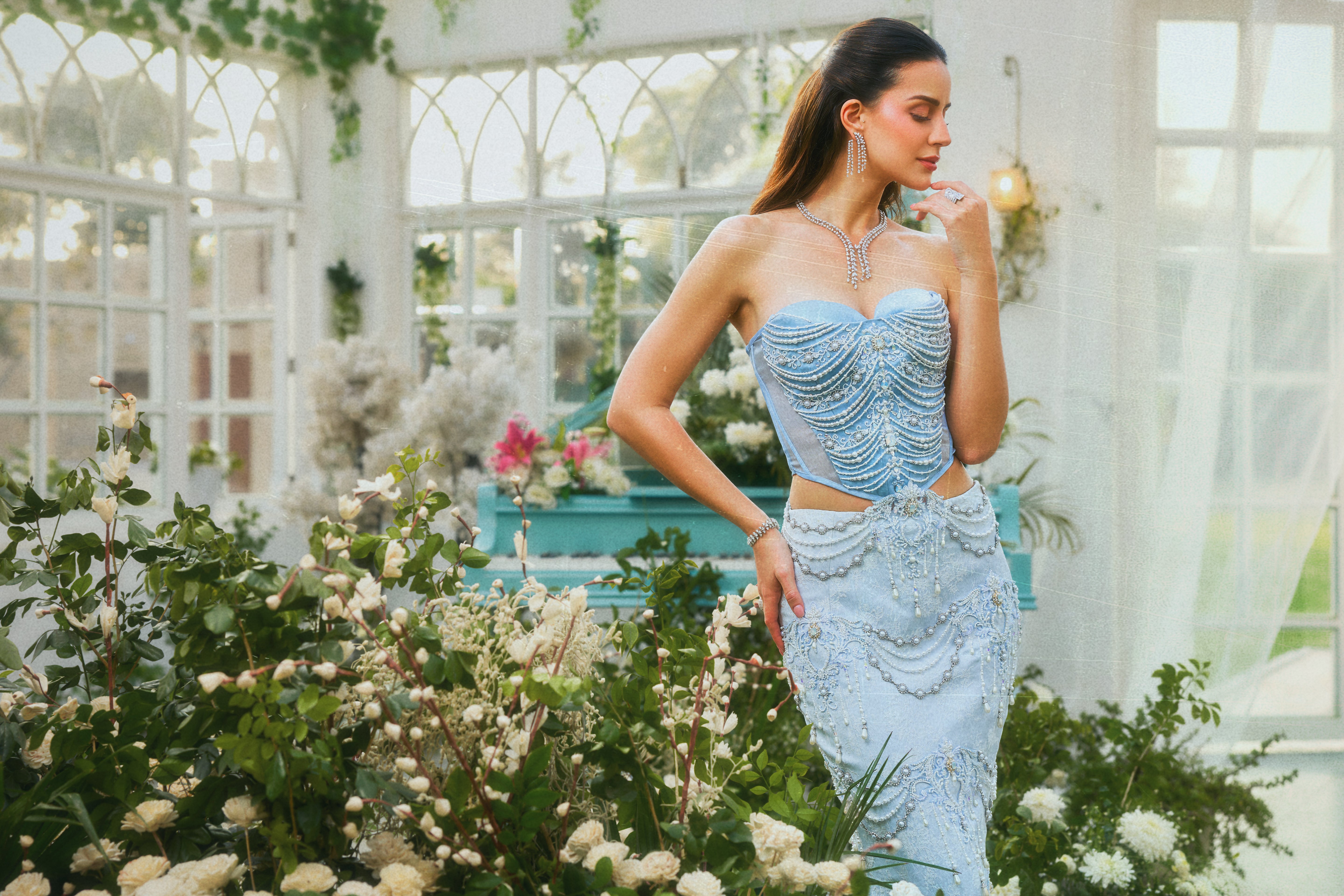 No. of Components: 3 (Column Skirt, Corset top, Drape scarf)